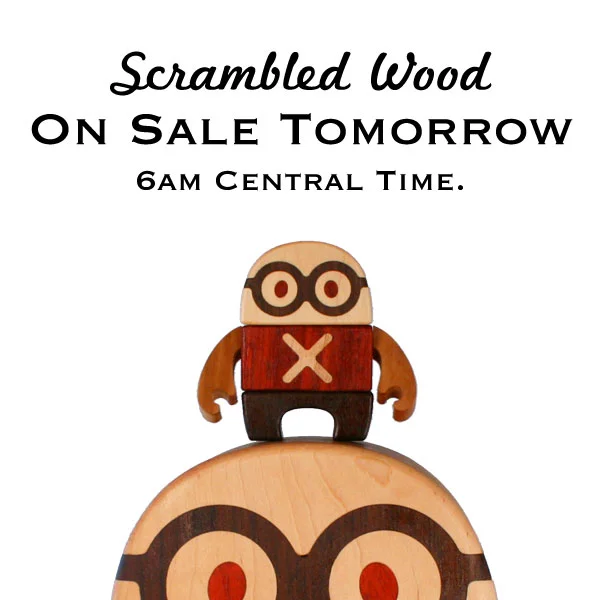 A Big reminder that our Scrambled Wood Sets go on Sale at 6am tomorrow morning! For the first 24 hours only we are offering the special Designer Con price of only $189 for all four figures, and free domestic shipping (discounted shipping for international orders) to everyone who is on our email list before the end of the day today. Sign up Here! See you Tomorrow!